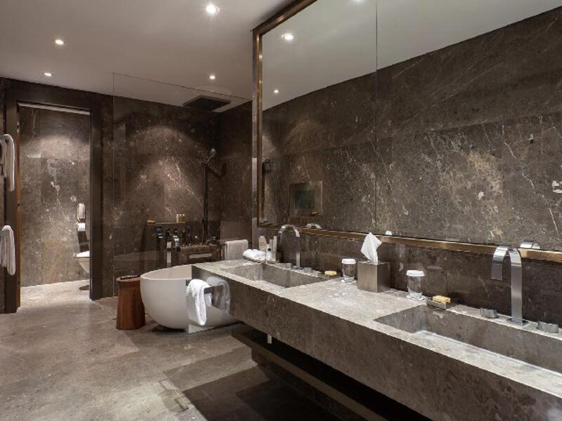 حمامات رخامية مع أحواض استحمام ودش منفصل