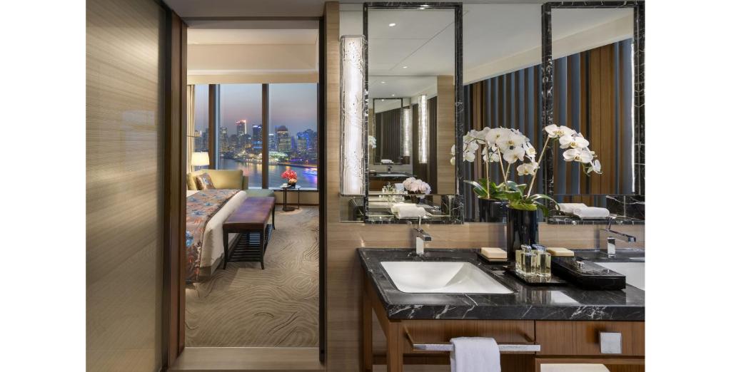 ماندارين أورينتال بودونغ شنغهاي غرفًا وأجنحة فاخرة بتصميم عصري أنيق، مع نوافذ