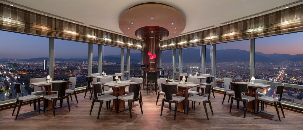 الفندق يمتلك مركز مؤتمرات كبير مع أكثر من 15 قاعة قابلة للتعديل وسعة إجمالية تصل إلى نحو 1,900 شخص (أو مساحة إجمالية بالآلاف من الأمتار المربعة)، مما يجعله خيارًا رئيسياً لاستضافة المؤتمرات والمعارض والزفاف والمناسبات الكبيرة في بورصة. يتضمن دعم تقني حديث وخدمات تخطيط فعاليات احترافية. لهذا السبب يُصنّف بين أفضل فنادق للمؤتمرات في بورصة.