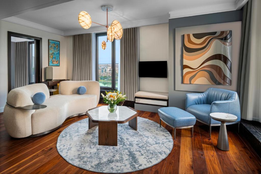 الغرف تتميز بتصاميم عصرية أنيقة، تبدأ من غرفة أرضية بحجم 40 متر²، وتصل إلى أجنحة فاخرة مع جاكوزي خاص على الشرفة أو حتى بنتهاوس بمسبح خاص. جميعها مزوّدة بأسرّة مريحة جدًا (“Sleep in Heaven”)، تلفزيونات ذكية، خدمة إنترنت مجانية، مصابيح قابلة للتعديل، وثلاجات مدمجة، بينما توفر الشرفات مساحات فسيحة لمشاهدة الغروب والاسترخاء.