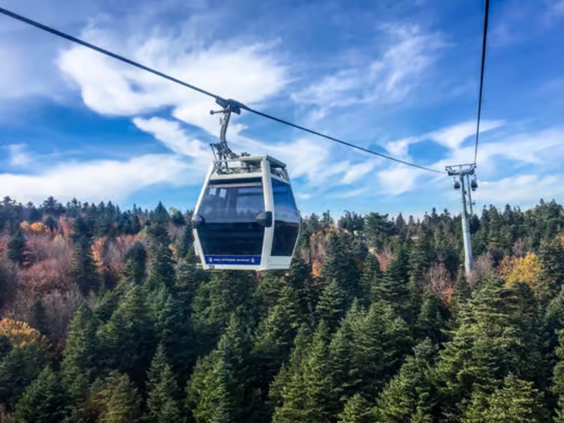 يُعد ركوب تلفريك بورصة تجربة لا مثيل لها، حيث يمكن للزوار الاستمتاع بمشاهدة غابات الصنوبر الكثيفة والمناظر الطبيعية البانورامية لمدينة بورصة من ارتفاعات شاهقة.