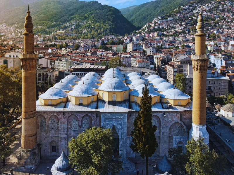 بارز: يعتبر الجامع الكبير رمزًا تاريخيًا ومعلمًا سياحيًا رئيسيًا في بورصة،